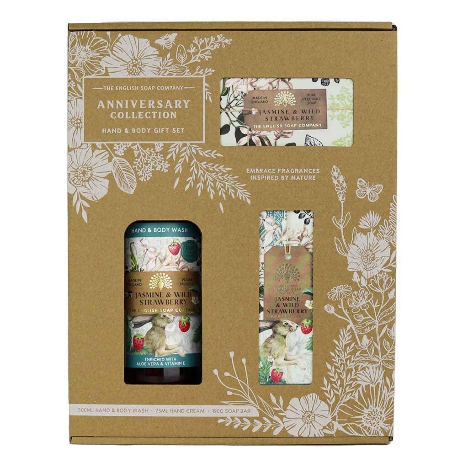 The English Soap Company Anniversary Hand and Body Gift Box Jasmine & Wild Strawberry